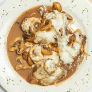 Breaded shrimp topped with mushroom and melted mozzarella in a brown marsala wine sauce. All entrées are served with pasta or house salad. Substitute chicken for veal for an additional charge.