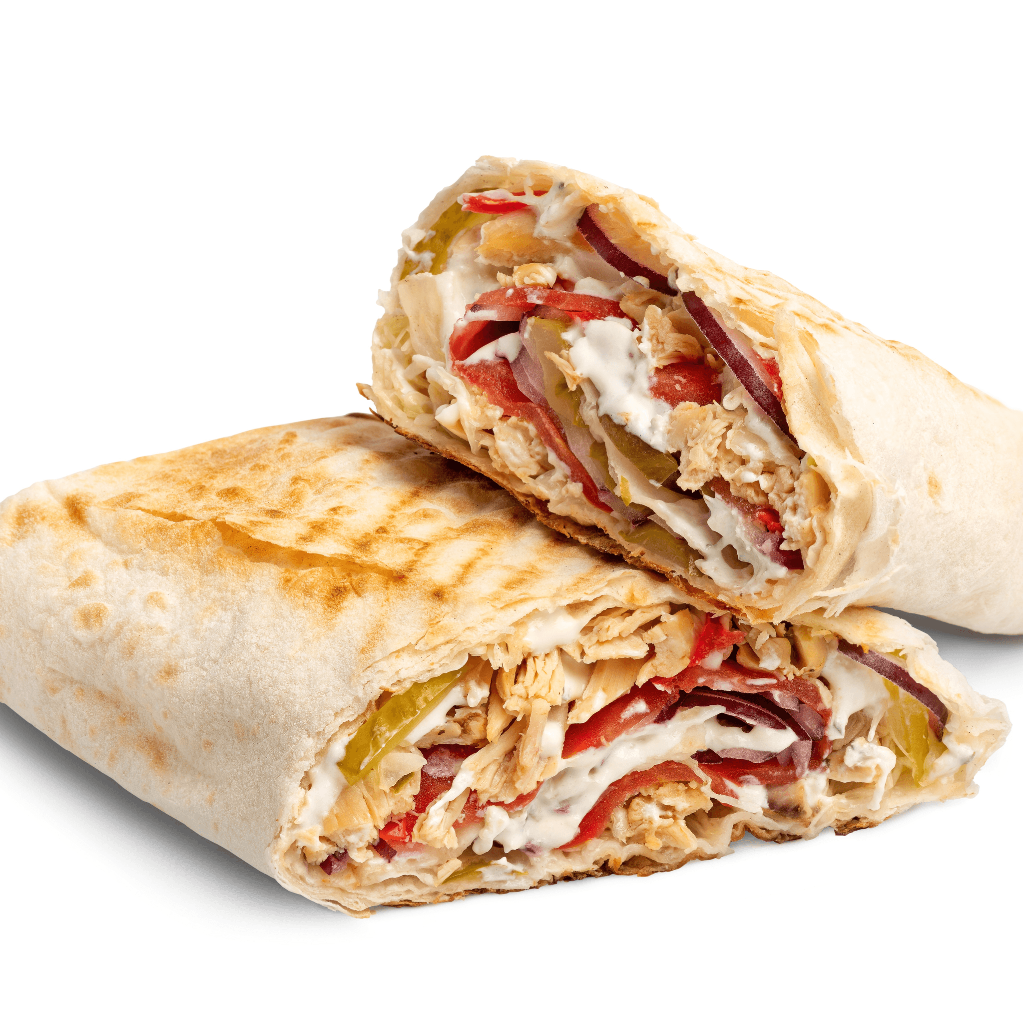 Tender chicken wrapped in a roll.