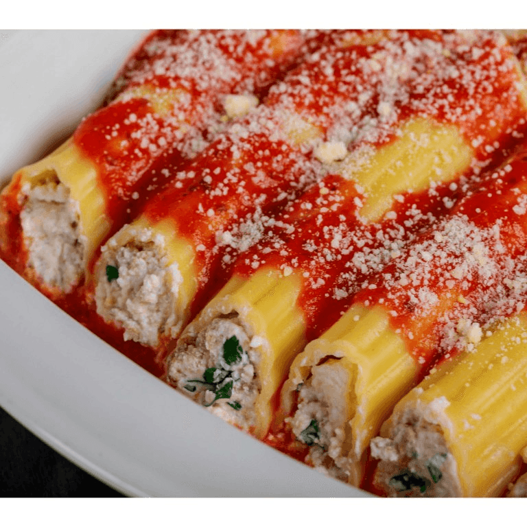 Delicious pasta pockets filled with savory ingredients, topped with a rich marinara sauce.